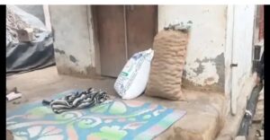 टूटी फूटी झोपड़ी की कच्ची दीवार, बिखरा हुआ सामान और बिस्तर पर पड़ी सिलवटें चीख चीखकर परिवार के मुफलिस गरीब होने की गवाही दे रही हैं। बिना दरवाजे वाले घर की चौखट पर रखा राशन एक गरीब की मौत पर मिला उपहार है।