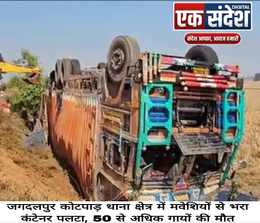 जगदलपुर | कोटपाड़ थाना क्षेत्र में मवेशियों से भरा कंटेनर पलटा, 50 से अधिक गायों की मौत