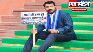 आज़ाद संसद भवन के मकर द्वार की सीढ़ियों और जमीन पर बैठकर धरने पर बैठ गए। उन्होंने हाथों में एक तख्ती (प्लेकार्ड) ले रखी थी जिस पर लिखा था— “जहरीली हवा है, सरकार लापता है”सरकार पर निशाना: उन्होंने दिल्ली और केंद्र सरकार दोनों की कार्यशैली पर सवाल उठाए। आज़ाद ने कहा कि दिल्ली में वायु गुणवत्ता सूचकांक AQI 450-500 के पार पहुँच गया है, लेकिन सरकारें ठोस कदम उठाने के बजाय केवल झूठे वादे कर रही हैं दिल्ली सरकार की आलोचना: उन्होंने विशेष रूप से दिल्ली के मंत्री के उस बयान पर निशाना साधा जिसमें प्रदूषण न रोक पाने की बात कही गई थी। उन्होंने सवाल किया कि यदि सरकार प्रदूषण नहीं रोक सकती, तो वह सत्ता में क्यों है संसद में स्थगन प्रस्ताव: उन्होंने बताया कि संसद के अंदर भी प्रदूषण के मुद्दे पर चर्चा के लिए स्थगन प्रस्ताव दिया है।