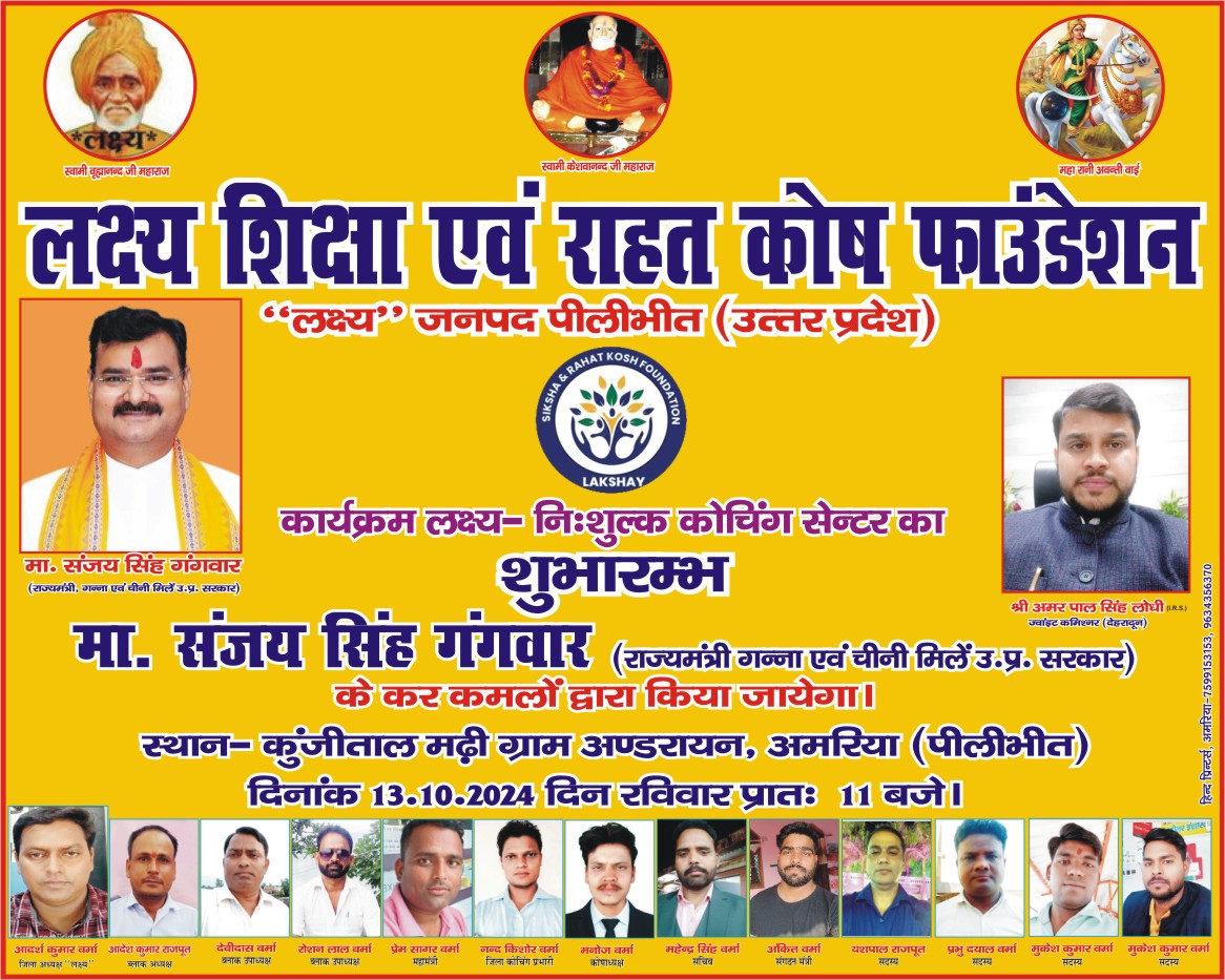 माo श्री अमरपाल सिंह लोधी जॉइंट कमिश्नर, भारत सरकार के संरक्षण में लक्ष्य शिक्षा एवं राहत कोष फाउंडेशन पीलीभीत द्वारा…